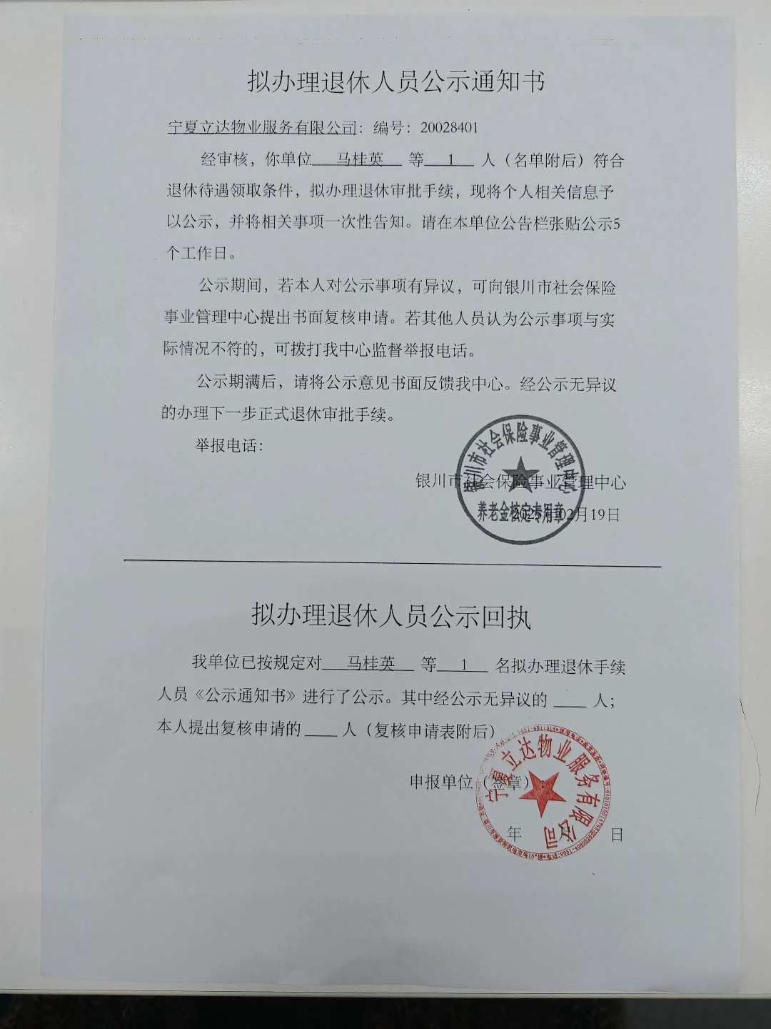 退休人員公示-馬桂英
